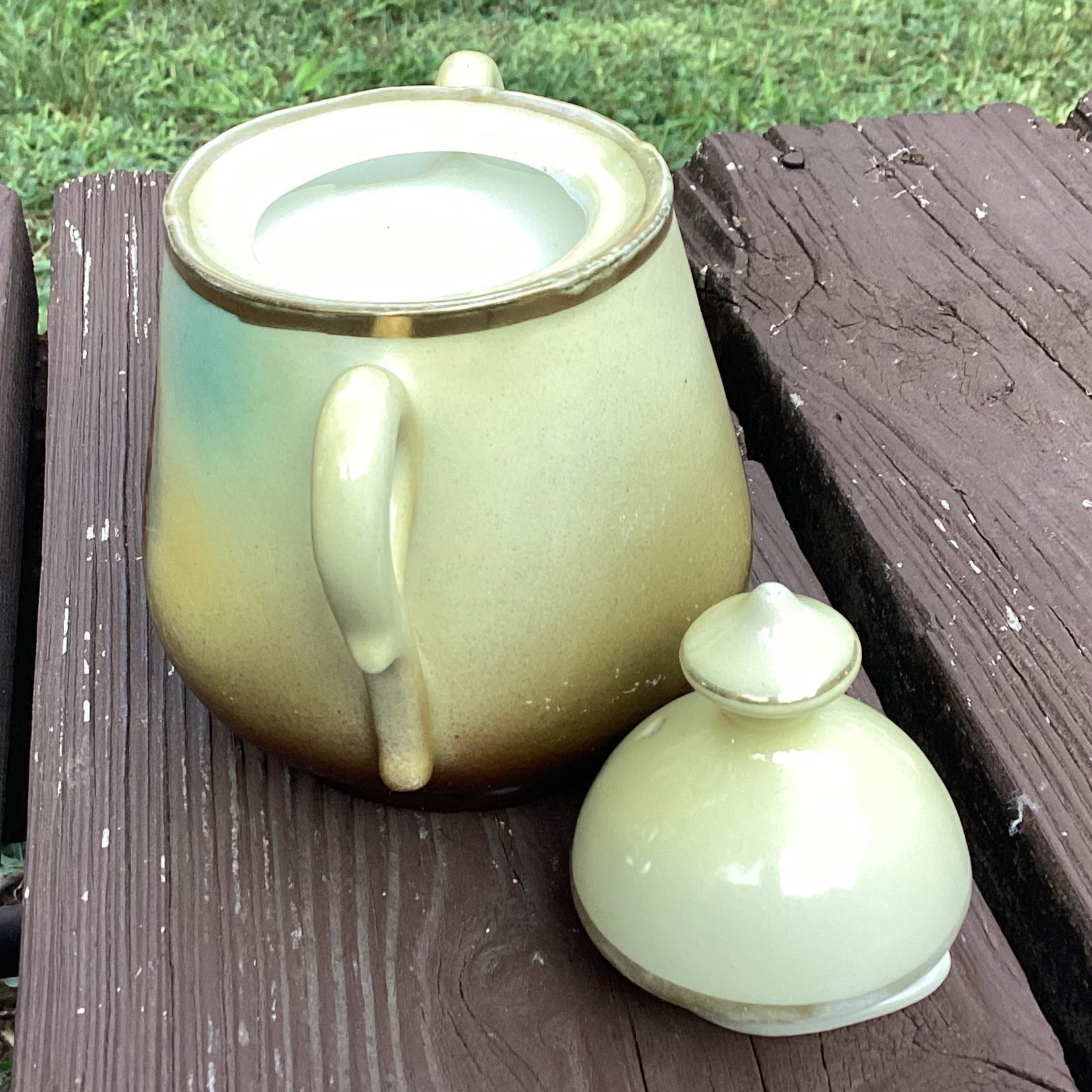 This oversized 13oz candle is hand-poured into a repurposed antique Austrian porcelain sugar bowl, dating from the late Victorian to early Edwardian era (1890–1910). The bowl features a Victorian-style portrait of a woman, elegant double handles, and a soft gradient glaze of tan, aqua, and brown — making it both a functional candle and a collector’s treasure.